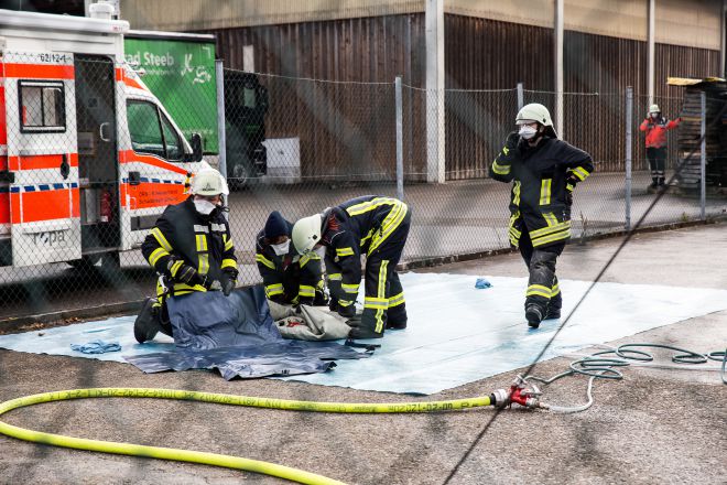 Ein beschädigter Kanister auf der Ladefläche eines Lasters löste am 15.12.2020 gegen 11.30 Uhr einen Großeinsatz der Feuerwehr auf dem Gelände einer Firma in der Mögglinger Ziegelfeldstraße aus. Verletzt wurde laut Polizeiangaben niemand. Wie sich später rausstellte, handelt es sich bei der Flüssigkeit um Wasserstoffperoxid, es bestehe also keine Gefahr für Mensch und Umwelt.